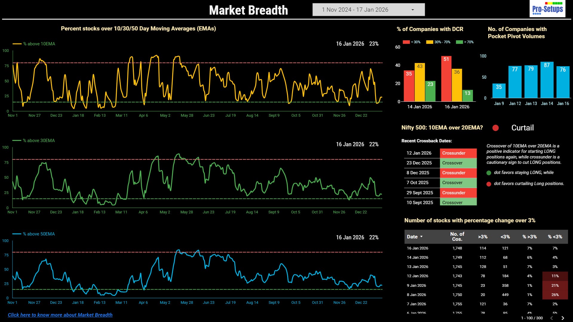 Accessing Market Breadth on Pro-Setups Dashboard is available for all readers. Click on the link below.