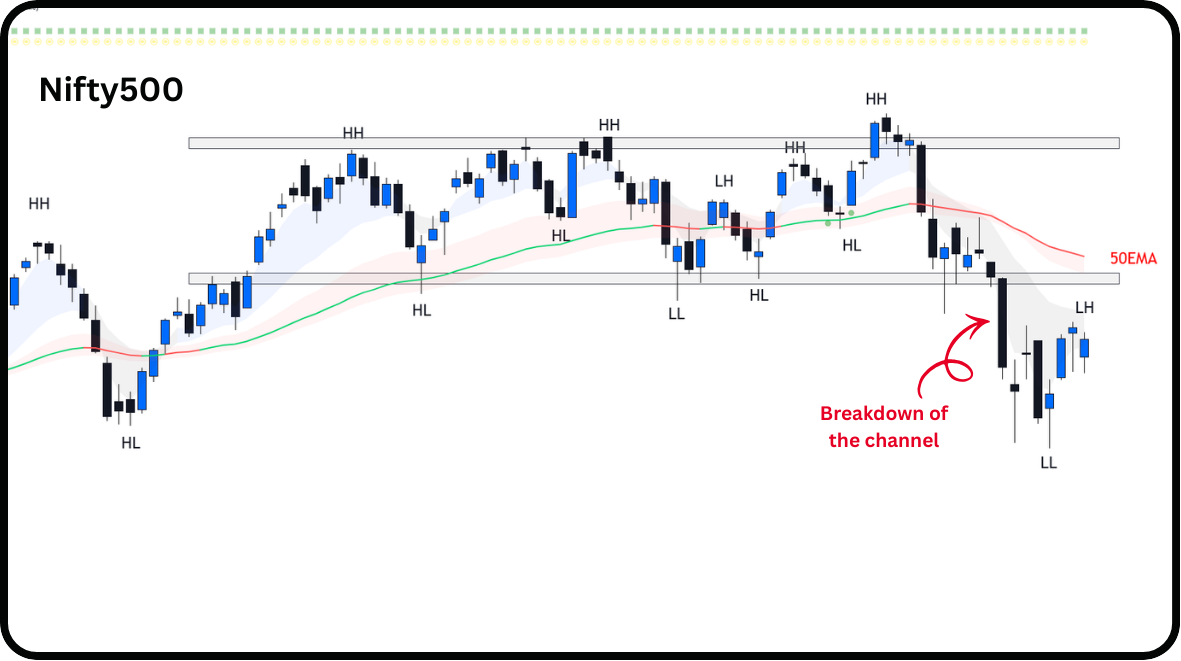 Nifty500 concluded a highly volatile month, characterized by a failed bullish breakout followed by a sharp structural breakdown.