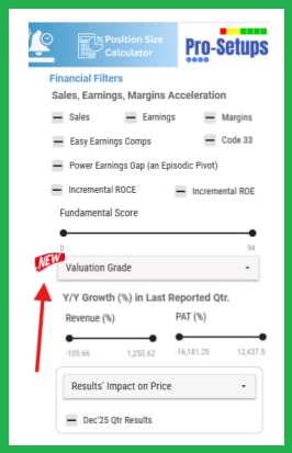 This week, we introduced ‘Valuation Grade’ filter in our Pro-Setups Dashboard. While technical analysis focuses on price and charts, adding valuation during a market correction becomes important even for swing and positional traders. When markets fall sharply, prices drop faster than businesses weaken. Reasonably valued stocks attract long-term investors which later fuels strong trends.