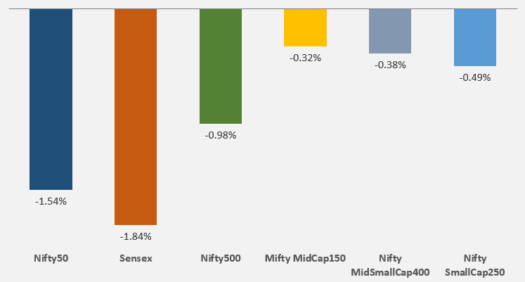 The Indian stock market ended the week on a weak note, as indices gave up gains in a sharp sell-off on Friday. The week had started on a relatively stable footing, but sentiment turned negative toward the end due to rising geopolitical tensions. Overall, the market showed broad weakness, in all large, mid and small-cap stocks.