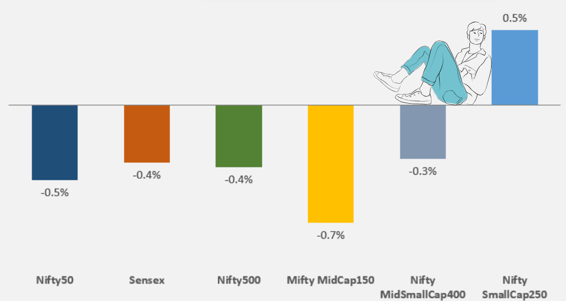 The standout divergence came from Nifty SmallCap 250, that closed in the green at +0.5%, signaling selective buying interest in the small-cap space even as large and mid caps faced selling pressure.