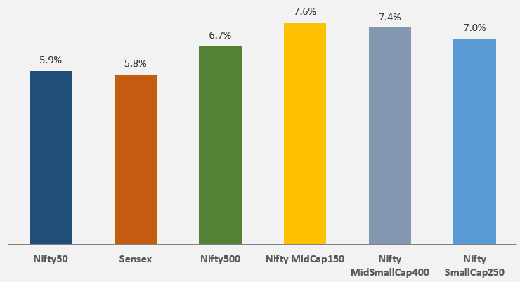 The Indian equity markets staged a spectacular recovery this week, snapping a grueling losing streak since the start of 2026 to post their best weekly performance since February 2021. The rally was primarily fueled by a fragile and yet, a dramatic de-escalation in West Asian tensions after the U.S. and Iran agreed to a two-week ceasefire, coupled with a neutral and supportive stance from the RBI’s Monetary Policy Committee. For the week, the Nifty 500 index delivered a robust performance, closing 6.7% higher, reflecting a broad-based participation across the market cap segments, with the Midcap index clearly taking the lead with a gain of 7.6%.