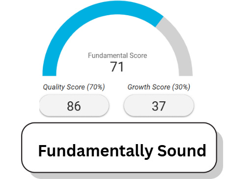 Identified using the proprietary Fundamental Score. A score > 65 or 70 can be said to give us fundamentally sound companies.