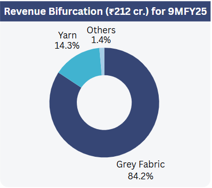Company Description: Incorporated in October 2020, Borana Weaves manufactures unbleached synthetic grey fabric and polyester textured yarn (PTY) at its manufacturing units in Surat, Gujarat. The company serves various industries including fashion, technical textiles, home décor, and interior design, with the synthetic grey fabric acting as a fundamental material for further processing like dyeing and printing. The company is part of a business group that includes R&B Denims Ltd. (listed on BSE with Market Cap of ~₹800 cr.)