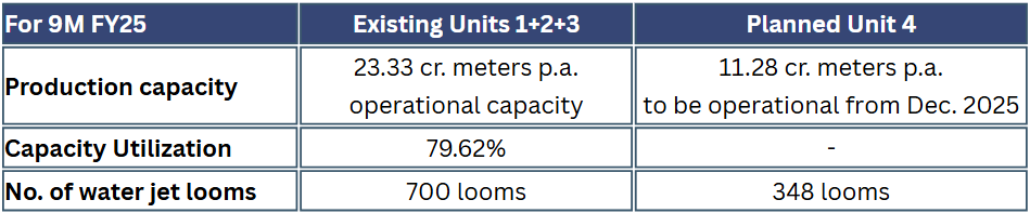Manufacturing: All the three operational manufacturing facilities, as well as the planned facility, are located in Surat, which is the major textile and apparel manufacturing hub in South Gujarat. The company benefits from this strategic location, since it provides easy access to raw materials & customers.