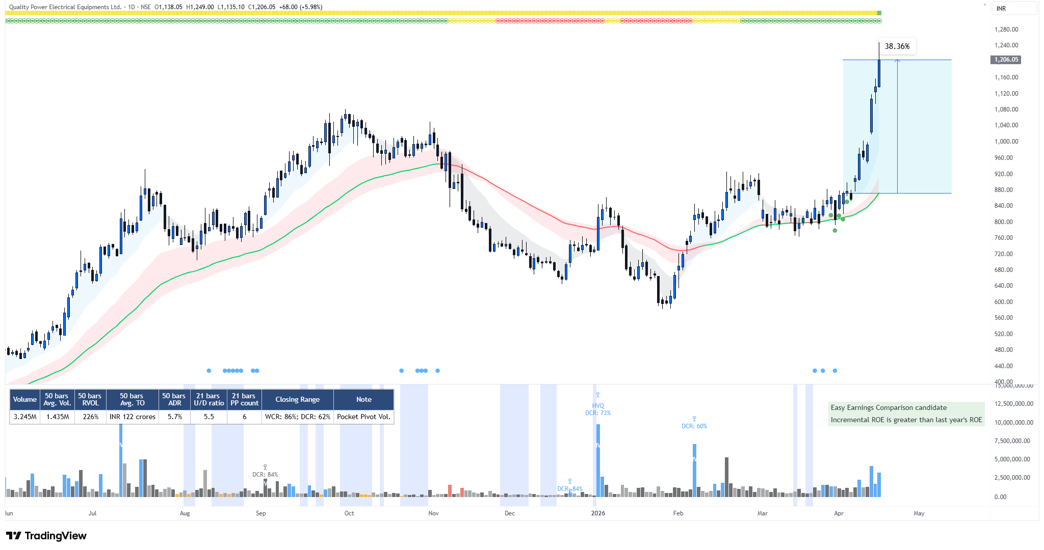 Following the easing of tensions between the United States and Iran after the ceasefire around 7-8 April, global sentiment improved and markets started to recover. As the broader market picked up post 6th April, QPOWER responded strongly, rallying over 38% in a short span. This move clearly showed how all the factors in the setup - sector strength, relative strength, fundamentals, and technical structure came together and played out effectively once the market environment turned supportive.