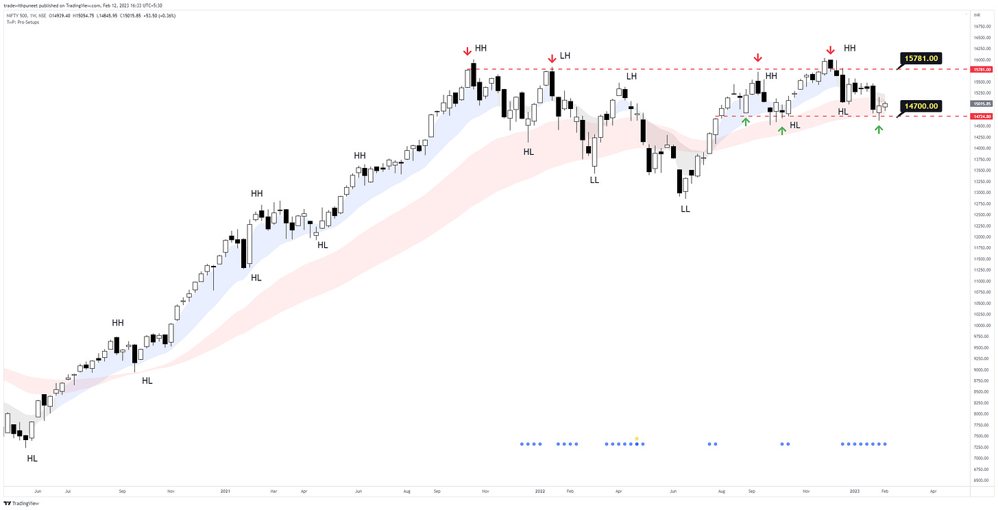 We should be able to take the high of the previous week’s (23rd Jan) black candle convincingly for a good run upwards. (Just to recall - we were not able to breach the high of 19th Dec weekly candle for over 3-4 weeks, and what followed was 23rd Jan black weekly candle.)