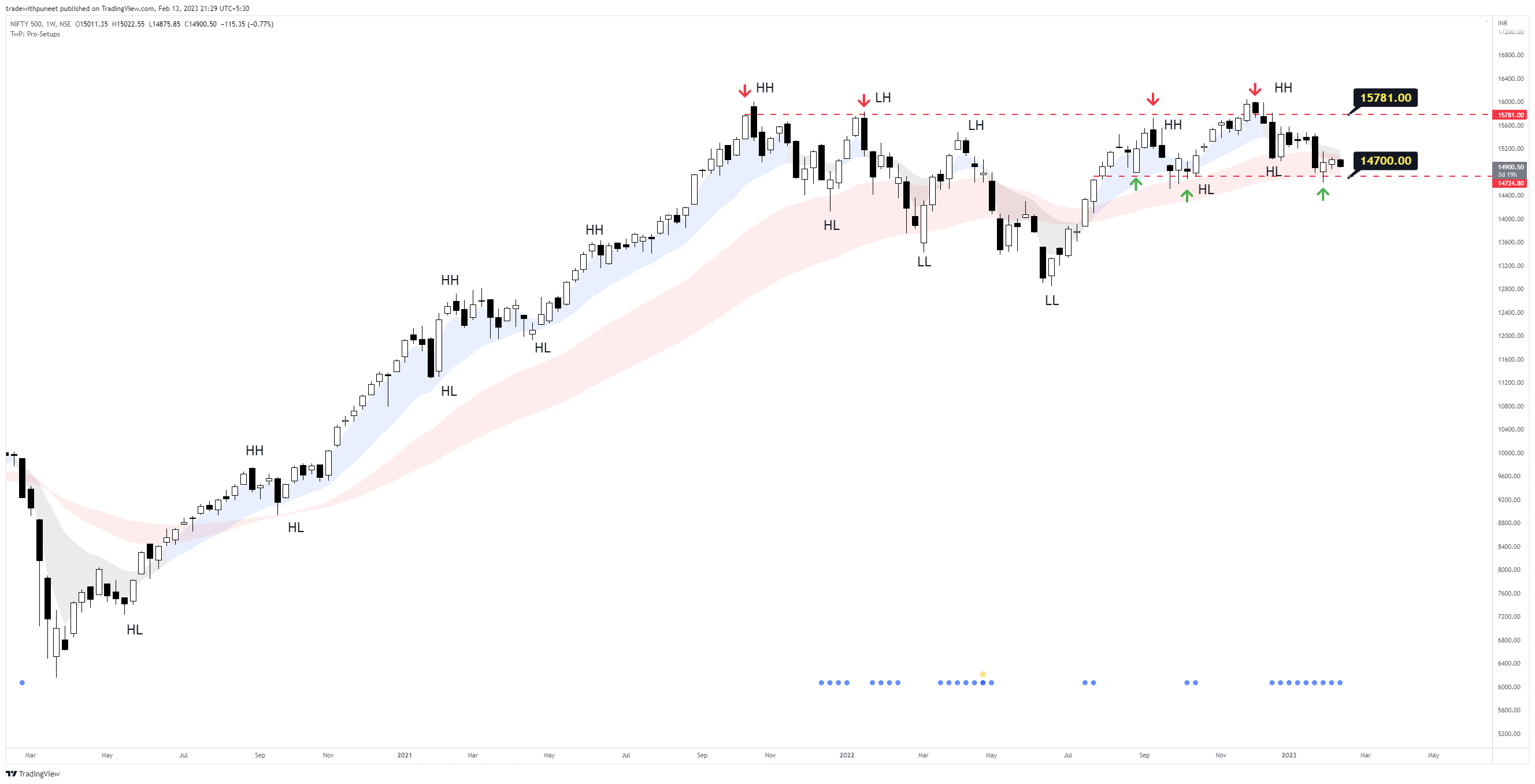 We should be able to take the high of the previous week’s (23rd Jan) black candle convincingly for a good run upwards. (Just to recall - we were not able to breach the high of 19th Dec weekly candle for over 3-4 weeks, and what followed was 23rd Jan black weekly candle.)