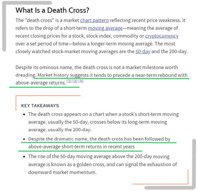 Here is what Investopedia says about a death cross.