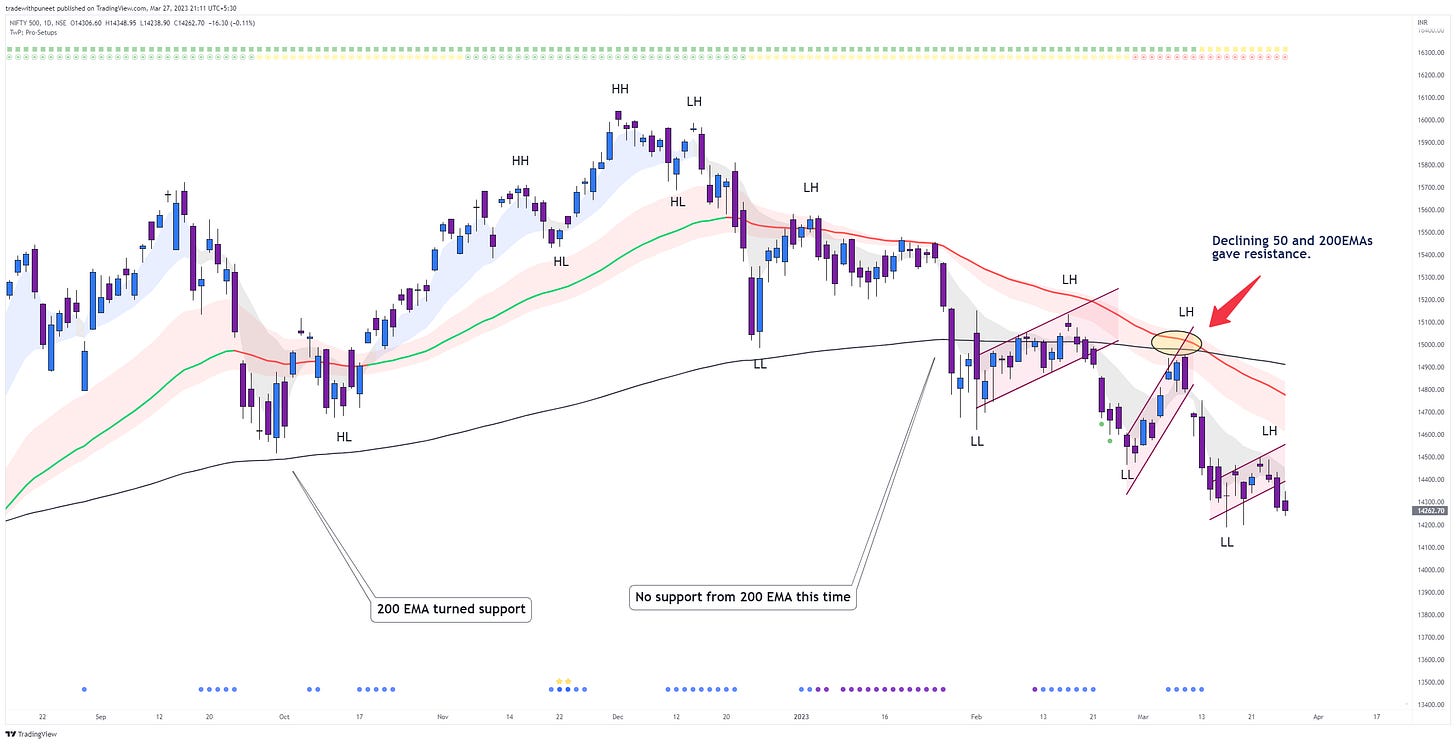 I wrote the last market sense update on 14th March (click here to read). The only change that has happened since then is that we made a new bear flag on Nifty500, and then broke it.