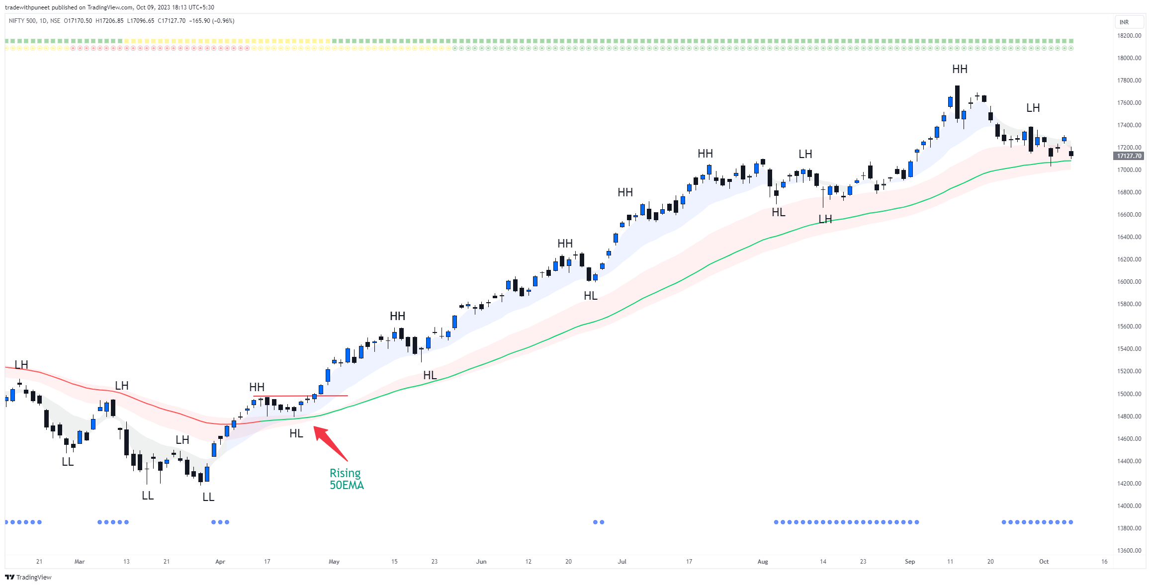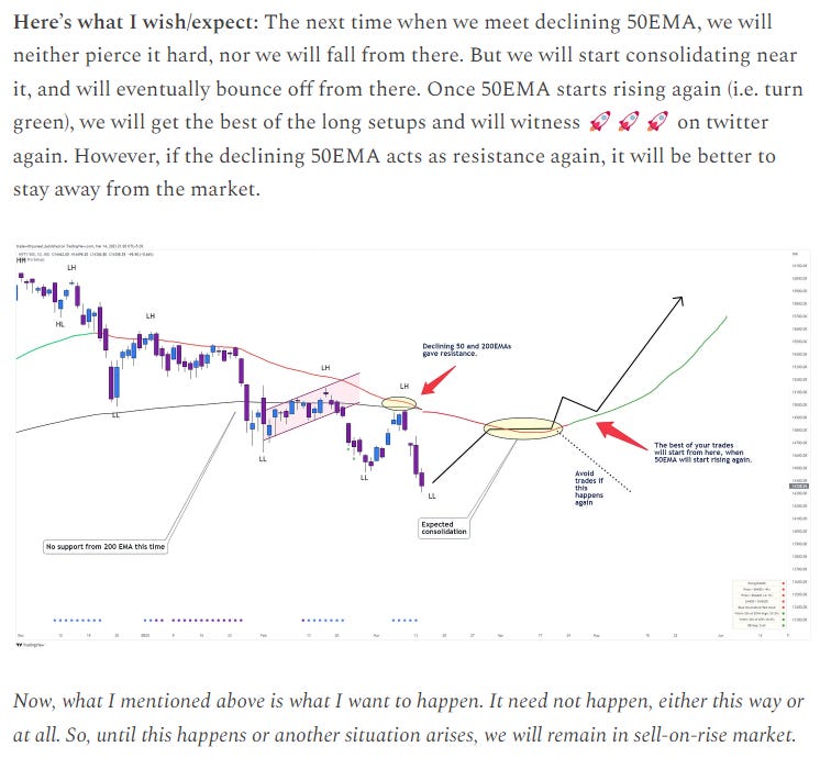 In the note previous to that (14th March 2023), I had mentioned how I expect Nifty500’s 50EMA to turn green, thereby resulting the start of profitable trading. Here is an excerpt of that note: