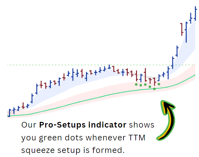 TTM Squeeze filter should not be used in isolation. Remember that the very purpose of this filter is to identify setups that are experiencing low volatility periods. To this, we have to add the probability of a stock to go up. Thus, we choose following filters: